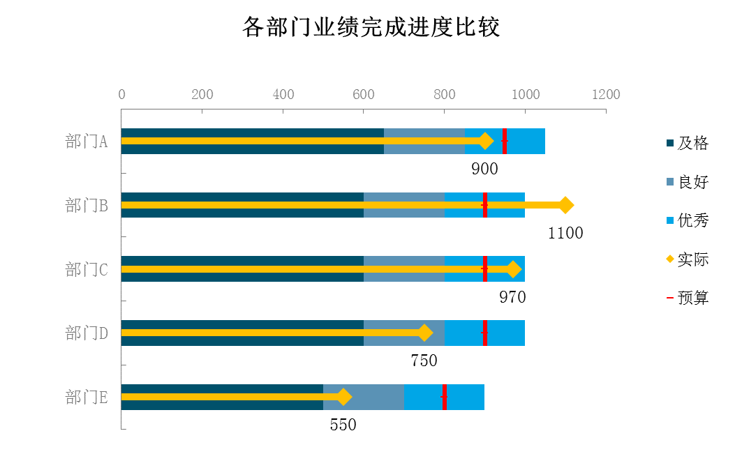 四、更复杂的完成进度对比分析图(子弹图);