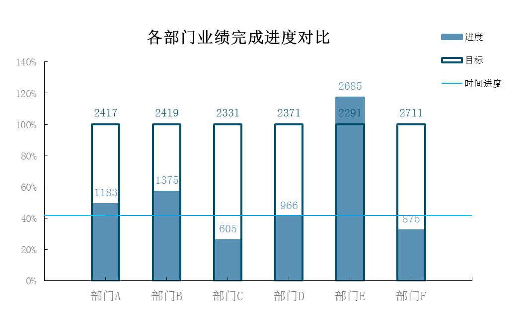 5、同理,依次将其他部门的进度数据标签和目标数据标签链接到相应单元格;