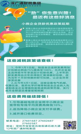 “助”你生意兴隆!最近有这些好消息 小微企业贷款优惠政策延期! 这些减税政策请查收 欢迎新老客户前来咨询 企业之家深广通 让创业更简单,让经营更轻松 电话:27601687、27602687、27602587 地址:深圳市宝安区石岩街道石岩大道12号金色雅苑商业1-3号1-2楼(公学-环保所右邻) |